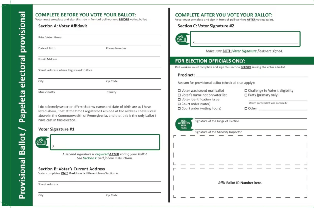 - ☐ Confirm the reason your ballot was provisional (ID, registration, precinct, mail ballot issue)